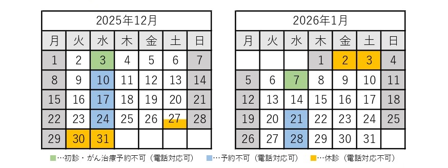 12・1月の休診日および診療日の変更は下記のとおりとなります。