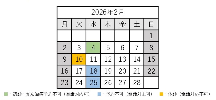 当院都合により、誠に勝手ながら2月の診療日に一部変更がございます。