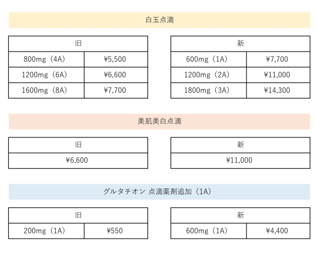 一部施術価格につきまして、諸経費の値上がり等に伴い